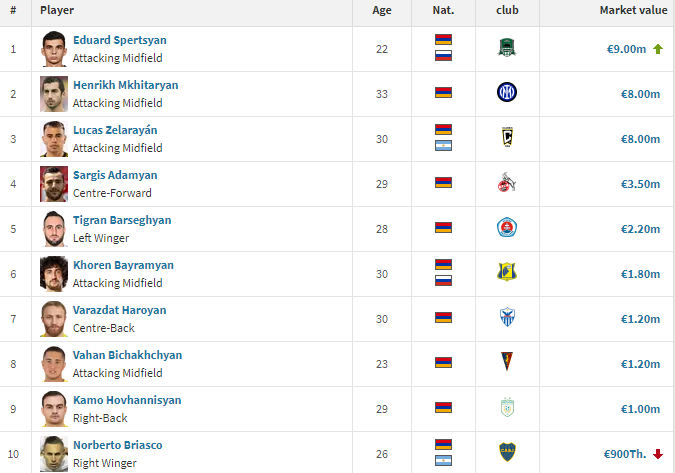Այսպիսով, նոր տրանսֆերային արժեքով Սպերցյանն արդեն համարվում է ամենաթանկարժեք հայ ֆուտբոլիստը (հաշվի է առնվում քաղաքացիությունը, թե որ հավաքականն է ներկայացնում ֆուտբոլիստը)