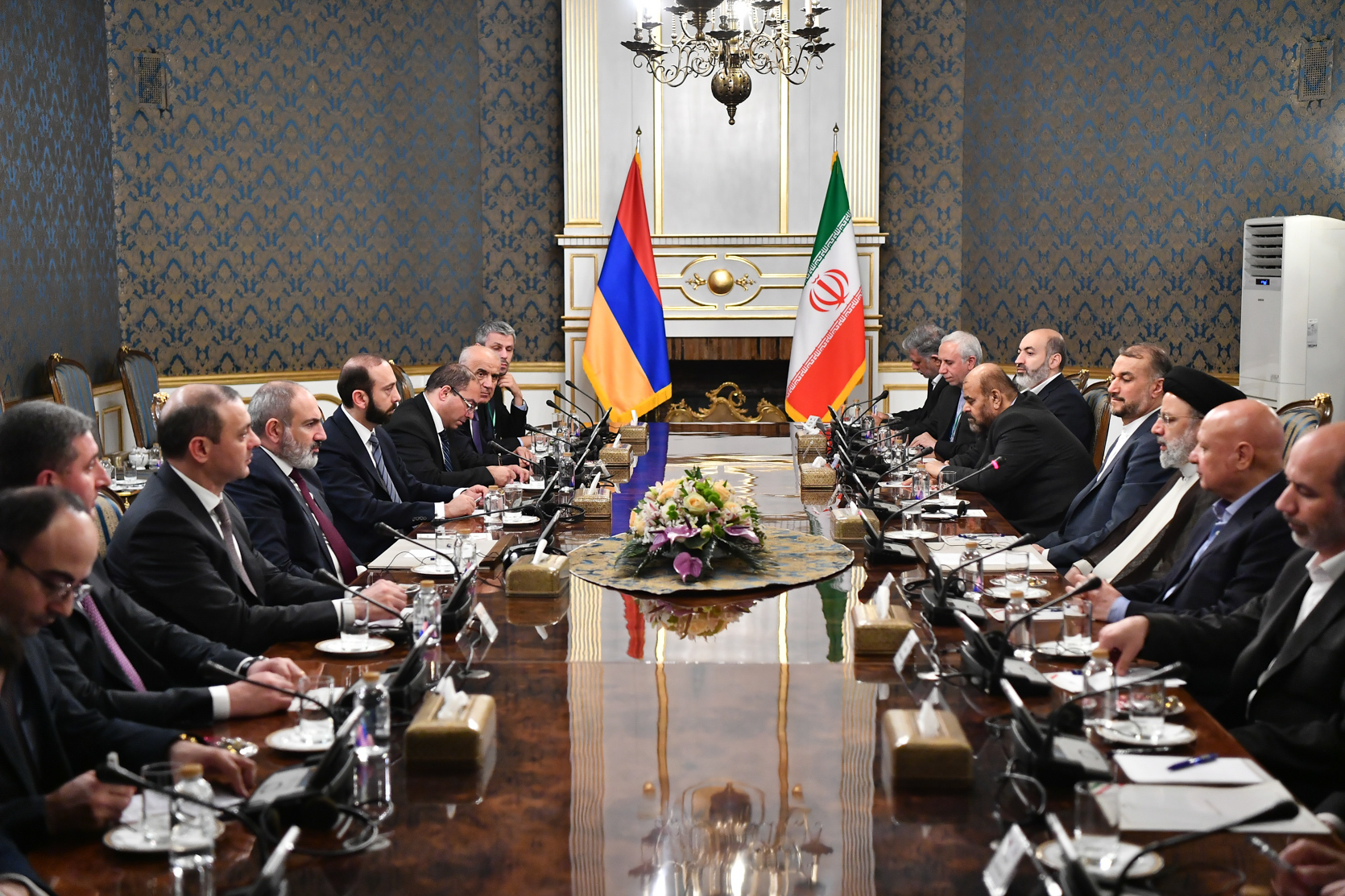 Նախ տեղի է ունեցել Հայաստանի և Իրանի առաջնորդների նեղ, ապա ընդլայնված կազմով հանդիպումը: Զրուցակիցները քննարկել են հայ-իրանական հարաբերությունների զարգացմանն առնչվող օրակարգային մի շարք հարցեր: Մասնավորապես, անդրադարձ է կատարվել առևտրատնտեսական կապերի ընդլայնման, առևտրաշրջանառության ծավալների շարունակական ավելացման հնարավորություններին: Մասնավորապես, ընդգծվել է այդ ծավալները տարեկան 3 մլրդ դոլարի հասցնելու անհրաժեշտությունը, ինչի համար, ըստ վարչապետ Փաշինյանի և Էբրահիմ Ռայիսիի, առկա է համապատասխան ներուժ: